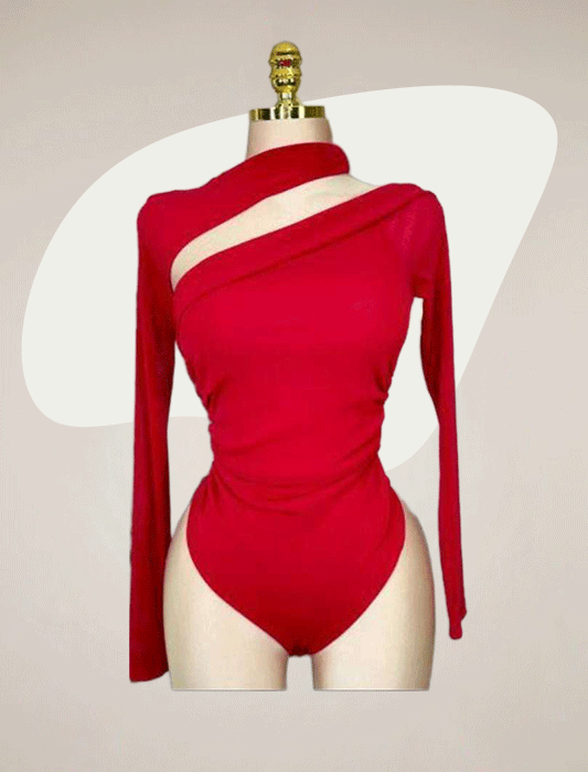 Make an unforgettable entrance with this bodysuit, asymmetrical one-shoulder silhouette paired with provocative double front cutouts that highlight your curves.