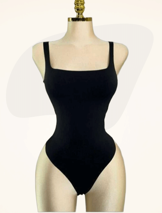A definitive wardrobe staple, this midnight black bodysuit features a modern square neckline and a seamless, body-contouring fit. Crafted from premium stretch fabric, it offers a smooth profile perfect for effortless layering or standalone wear.